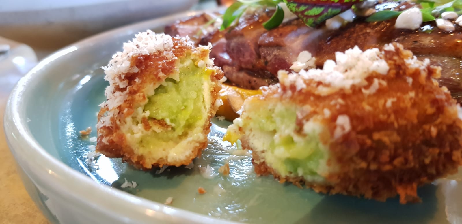 My, oh my, how the humble pea shone! This little starter won us over from first bite…First you get the crunchy, second you get the sharpness of parmesan shaving then a split micro-second later, the cheesy pea-mash filling. Only thing, we wanted MORE! What a teaser for the tastebuds! Great texture and flavour combo – everything just works perfectly well.